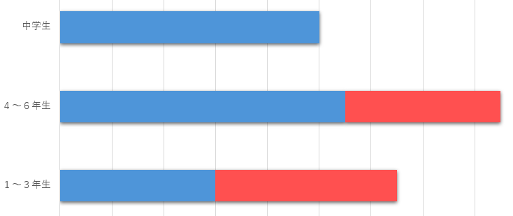 中学生33%、高学年27%、中学年34%、低学年6%、バランスがいい😆