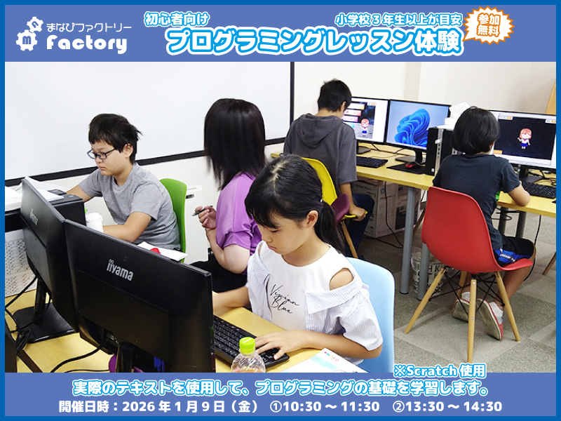 冬休み期間中、初心者向けプログラミングレッスン体験を開催致します。